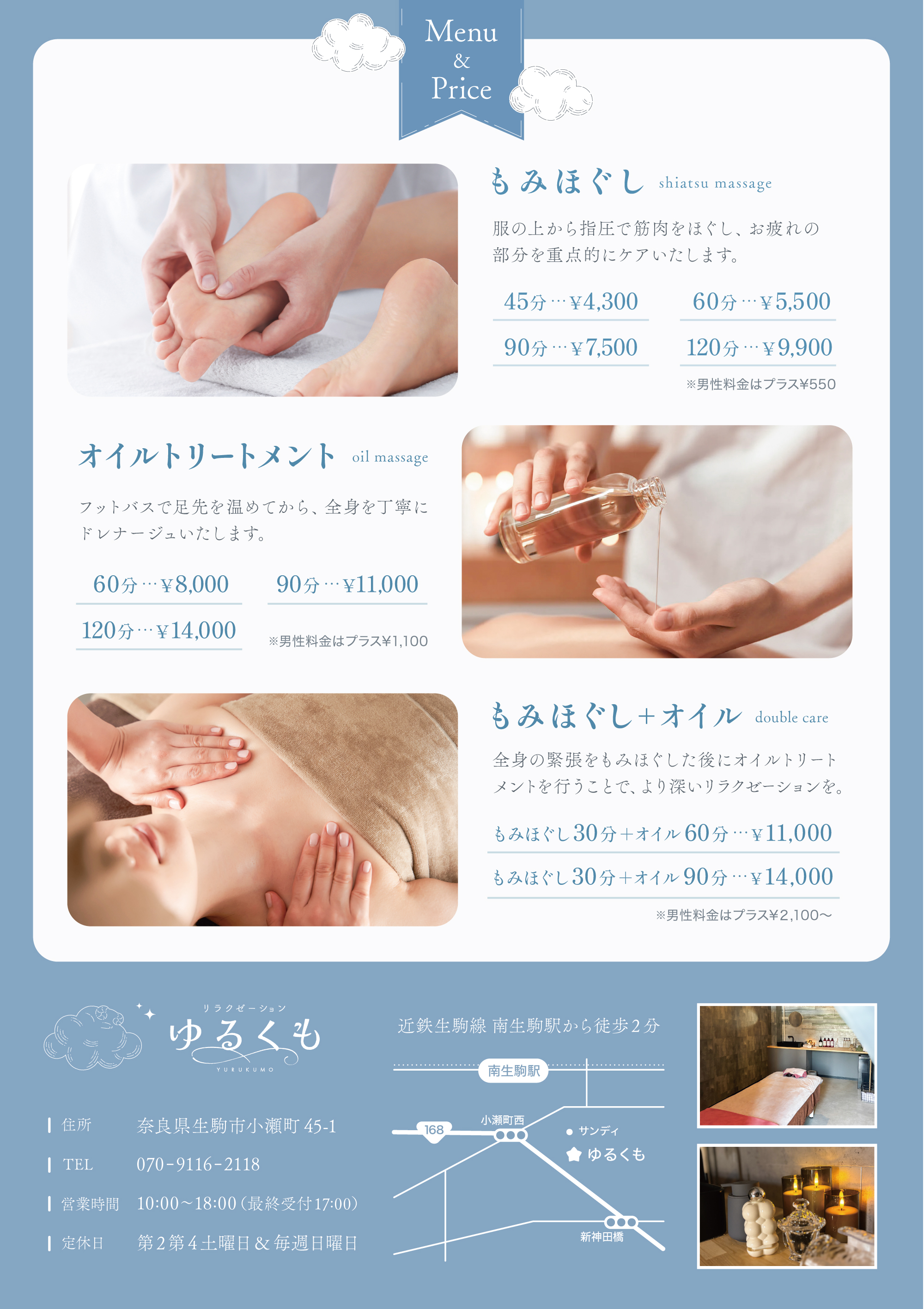 同サロンのWebサイト・ロゴと世界観を統一したオープン告知チラシを制作。