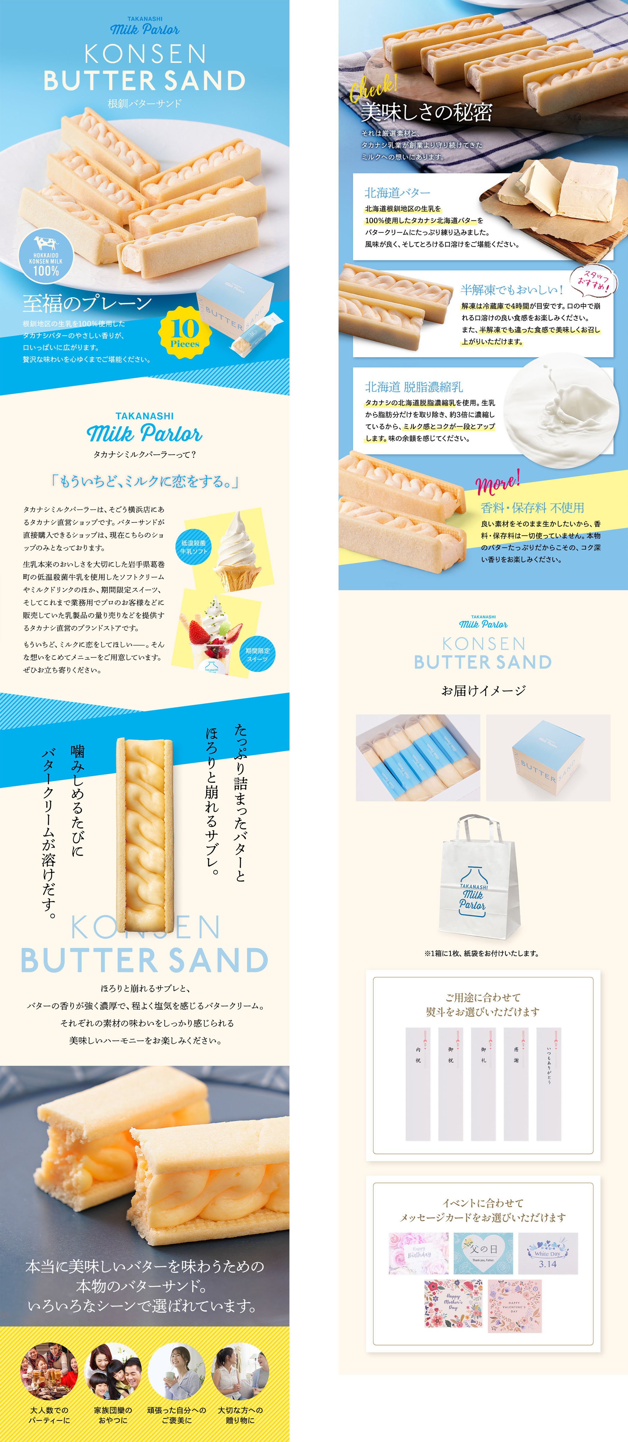 乳製品販売店様 2026 3/19 制作内容 楽天市場に掲載する北海道産乳製品の商品LPをライティングから担当。ミルクのやさしいおいしさを伝えるため、牧場の青空と白を基調としたカラーリングで統一。素朴で誠実な印象を大切にしながら、食欲を刺激するコピー作成、ビジュアル構成を心がけました。■担当範囲ライティング、ワイヤーフレーム、デザイン制作■使用ツールPhotoshop、Illustrator■制作期間3日 LP制作 未分類